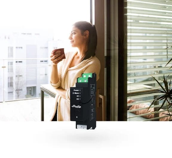 Professional DIN rail Z-Wave® shutter control with power metering. Suitable for home and facility automation with remote control of motorized blinds, roller shutters, venetian blinds, awnings..